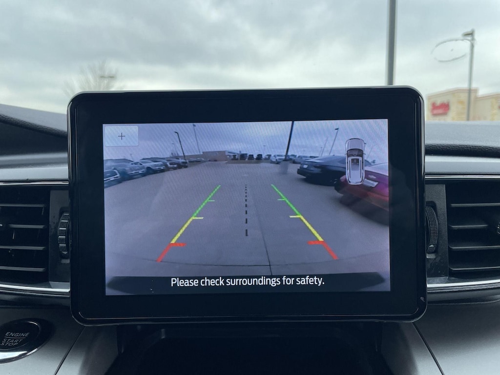 - The vehicle is equipped with a camera that displays an image of the area behind the vehicle on an interior display. The camera is equipped with its own washer.
