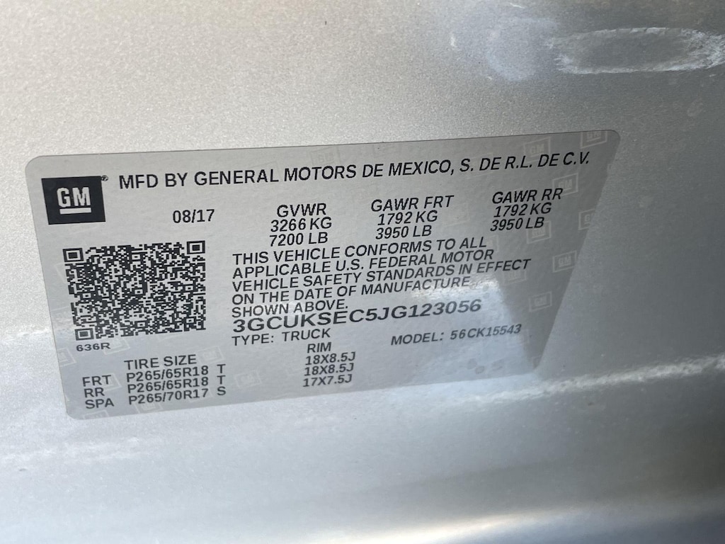 EMISSIONS, FEDERAL REQUIREMENTS, ENGINE, 5.3L ECOTEC3 V8 WITH ACTIVE FUEL MANAGEMENT, DIRECT INJECTION AND VARIABLE VALVE TIMING, TRANSMISSION, 6-SPEED AUTOMATIC, ELECTRONICALLY CONTROLLED, GVWR, 7200 LBS. (3266 KG), REAR AXLE, 3.08 RATIO, WHEELS, 18 X 8.5 (45.7 CM X 21.6 CM) BRIGHT-MACHINED ALUMINUM, TIRES, P265/65R18 ALL-SEASON, BLACKWALL, PAINT, SOLID, SILVER ICE METALLIC, SEATS, FRONT FULL-FEATURE LEATHER-APPOINTED BUCKET WITH (KA1) HEATED SEAT CUSHIONS AND SEAT BACKS, JET BLACK, LEATHER-APPOINTED SEAT TRIM, AUDIO SYSTEM, CHEVROLET MYLINK RADIO WITH NAVIGATION AND 8 DIAGONAL COLOR TOUCH-SCREEN, AM/FM STEREO, LTZ PLUS PACKAGE, UNDERBODY SHIELD, TRANSFER CASE PROTECTION, WHEEL, FULL-SIZE SPARE, 17 (43.2 CM) STEEL, BED LINER, SPRAY-ON, PICKUP BOX BED LINER, LICENSE PLATE KIT, FRONT, BOSE SOUND WITH 6 SPEAKER SYSTEM, WIRELESS CHARGING, CONSOLE, FLOOR MOUNTED, RECONFIGURABLE, STEERING WHEEL, HEATED, LEATHER-WRAPPED AND COLOR-KEYED, PEDALS, POWER-ADJUSTABLE, FRONT AND REAR PARK ASSIST, ULTRASONIC