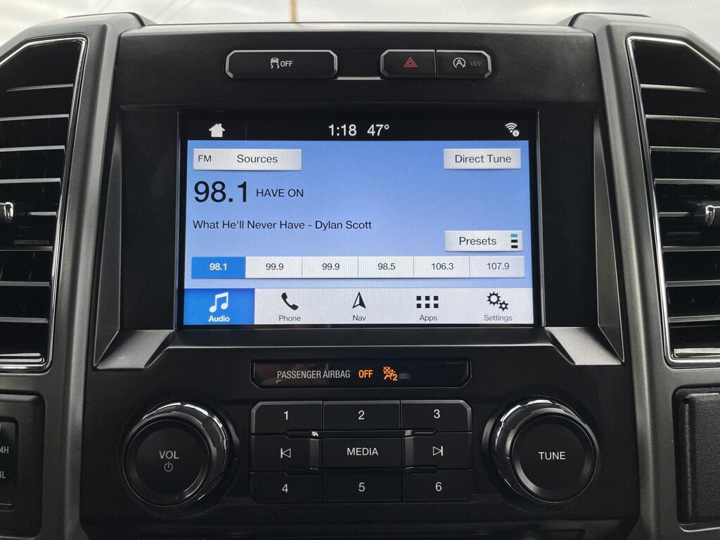 - Includes vehicle with standard equipment, fixed backlight with privacy glass and defroster, 10-way power driver and passenger seats with power lumbar adjustment, heated front seats, 4.2 inch productivity screen in instrument cluster, auto-dimming rearview mirror, leather-wrapped steering wheel, reverse sensing system, power-adjustable pedals, rear under seat storage, manual folding, power glass side view mirrors with heat, turn signals, and black skull caps, Class IV trailer hitch with Smart Trailer Tow Connector and 4-pin/7-pin wiring, remote start system, SiriusXM Satellite Radio with 7 speakers, SYNC 3 enhanced voice-activated in-vehicle connectivity system including 8 inch center stack touch screen with swiping and pinch-to-zoom capabilities, compass, clock, 911 assist, AppLink, Apple CarPlay, Android Auto, and two USB charging ports, one 110V/400W outlet in instrument panel (two with console seats), and XLT Chrome Appearance Package including 18 inch chrome-like PVD wheels, 275/65R18 OWL all-terrain tires, chrome billet style grille with chrome surround and black mesh insert, chrome door handles with black strap, chrome front tow hooks, chrome single-tip exhaust, and chrome step bars. SiriusXM U.S. Satellite Service is available in the 48 contiguous United States and D.C.