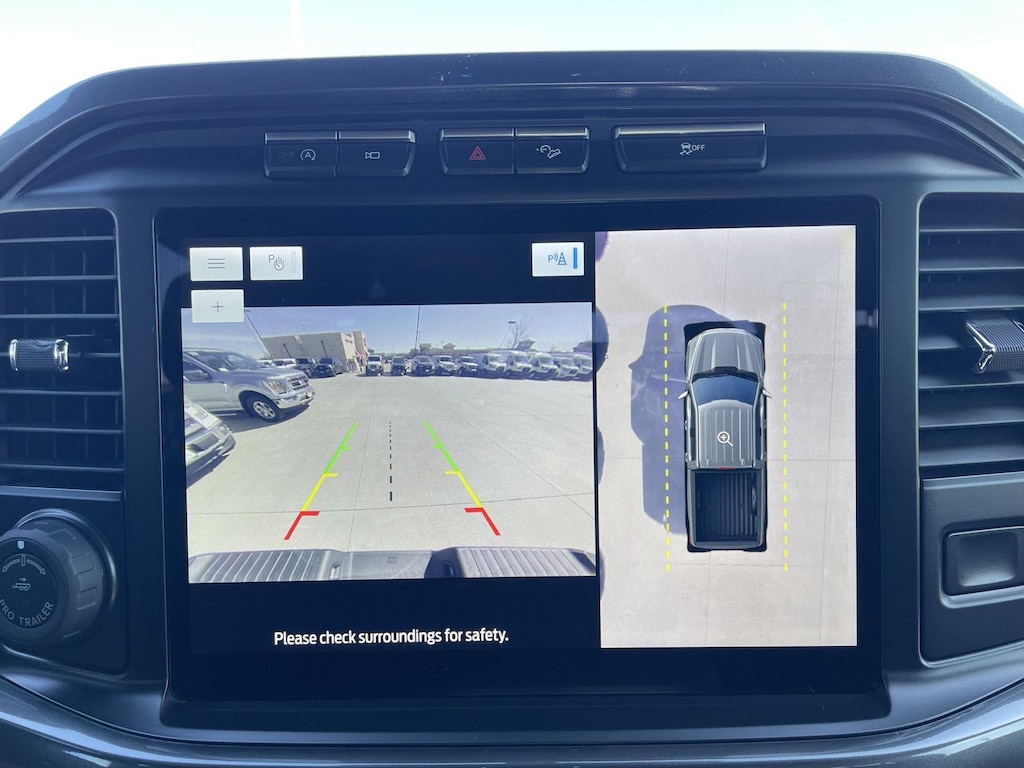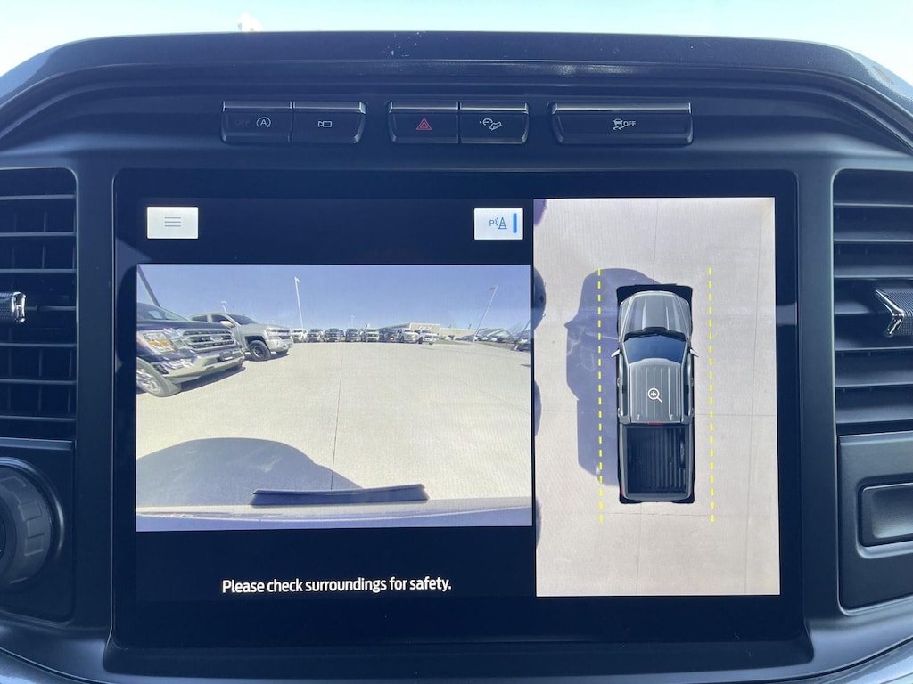 - The vehicle is equipped with a camera that displays an image of the area behind the vehicle on an interior display.