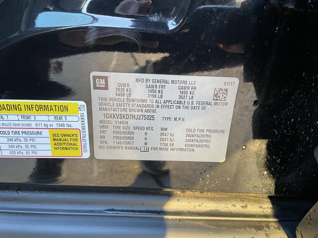 EMISSIONS, FEDERAL REQUIREMENTS, ENGINE, 3.6L SIDI V6, TRANSMISSION, 6-SPEED AUTOMATIC, AXLE, 3.16 RATIO, EBONY TWILIGHT METALLIC, RECLINING FRONT BUCKETS, EBONY, SEAT TRIM, PERFORATED LEATHER-APPOINTED SEATING ON FIRST AND SECOND ROWS, SEATING, 7-PASSENGER (2-2-3 SEATING CONFIGURATION), AUDIO SYSTEM, COLOR TOUCH NAVIGATION RADIO WITH INTELLILINK, LPO, GMC INTERIOR PROTECTION PACKAGE, COOLING SYSTEM, HEAVY-DUTY, TRAILERING EQUIPMENT, TRAILER HITCH, FACTORY INSTALLED, SUNROOF, DUAL SKYSCAPE 2-PANEL POWER WITH TILT-SLIDING FRONT AND FIXED REAR, LICENSE PLATE BRACKET, FRONT, SEATING, FRONT, HEATED AND COOLED DRIVER AND PASSENGER, LPO, ALL-WEATHER FLOOR MATS, FIRST AND SECOND ROW, LPO, ALL-WEATHER FLOOR MATS, THIRD ROW, LPO, ILLUMINATED DOOR SILL PLATES, LPO, ALL-WEATHER REAR CARGO MAT