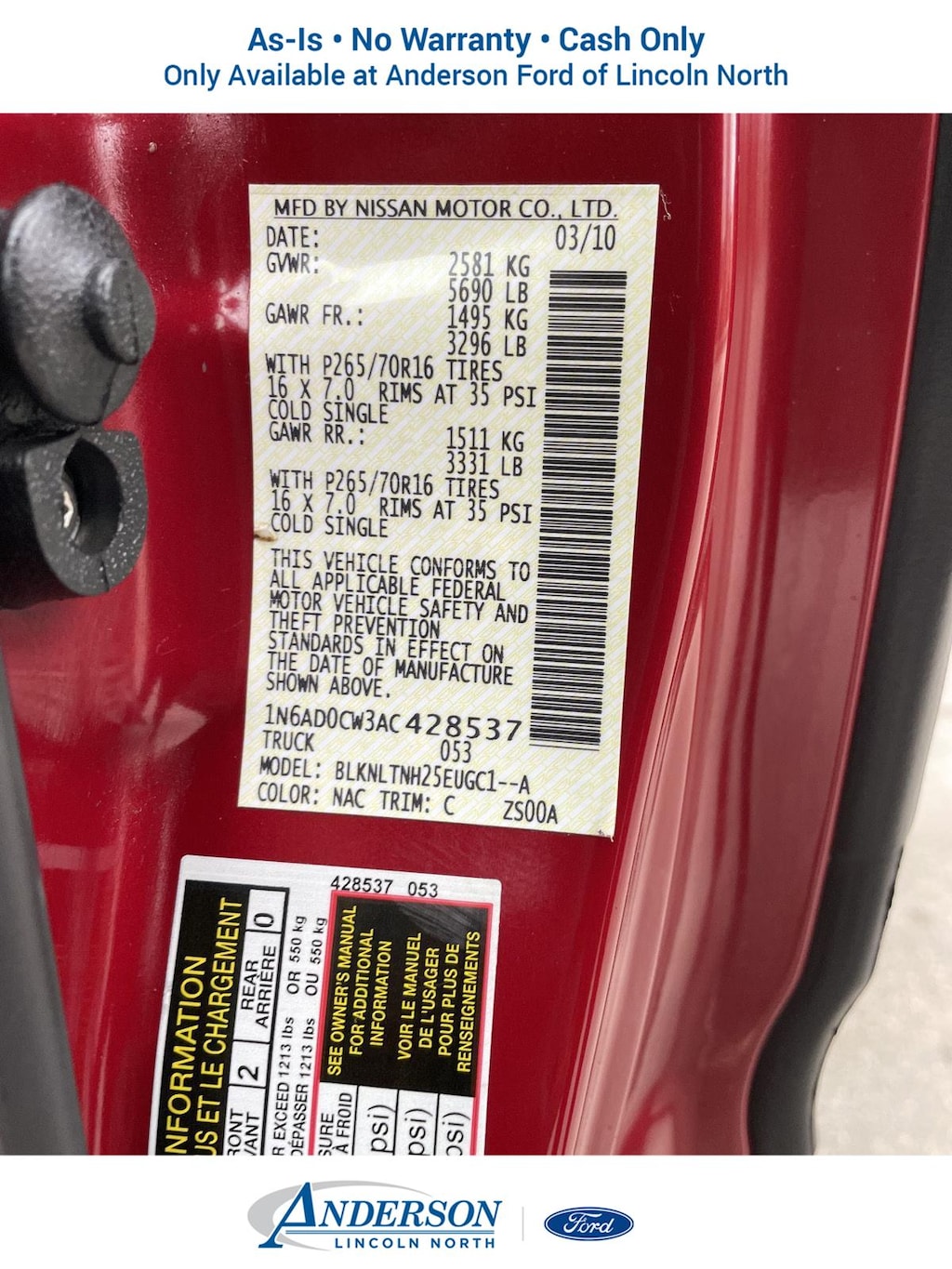 [C02] FEDERAL EMISSIONS, RED BRICK, BEIGE, SEAT TRIM, [K02] SE VALUE TRUCK PKG