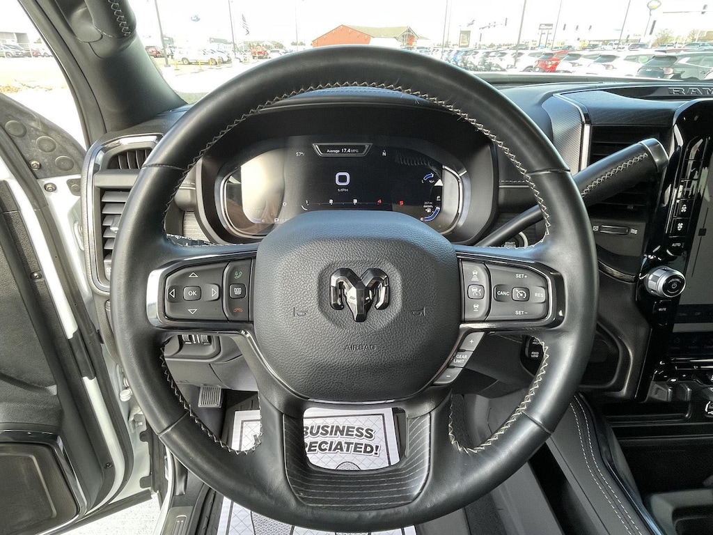 ENGINE: 6.7L I6 CUMMINS HO TURBO DIESEL, TRANSMISSION: 6-SPEED AUTOMATIC AISIN AS69RC HD, QUICK ORDER PACKAGE 21M LIMITED, 3.73 AXLE RATIO, WHEELS: 20 X 8.0 SATIN CARBON W/CHROME INSERT, TIRES: LT285/60R20E OWL ON/OFF ROAD, BRIGHT WHITE CLEARCOAT, BLACK, LIMITED LEATHER BUCKET SEATS, GVWR: 12,300 LBS, COLD WEATHER GROUP, LIMITED LEVEL 1 EQUIPMENT GROUP, 220 AMP ALTERNATOR, ENGINE BLOCK HEATER, AUTO LEVEL REAR AIR SUSPENSION, ADAPTIVE STEERING SYSTEM, POWER SUNROOF, MOPAR DEPLOYABLE BED STEP, FRONT LICENSE PLATE BRACKET, RADIO: UCONNECT 5 NAV W/12.0 DISPLAY, LUXURY DOOR TRIM PANEL (CTH), MOPAR FRONT & REAR RUBBER FLOOR MATS, RAMBOX DELETE, CTR STOP LAMP W/CARGO VIEW CAMERA, INSTRUMENT CLUSTER THEME 8, MANUFACTURER'S STATEMENT OF ORIGIN
