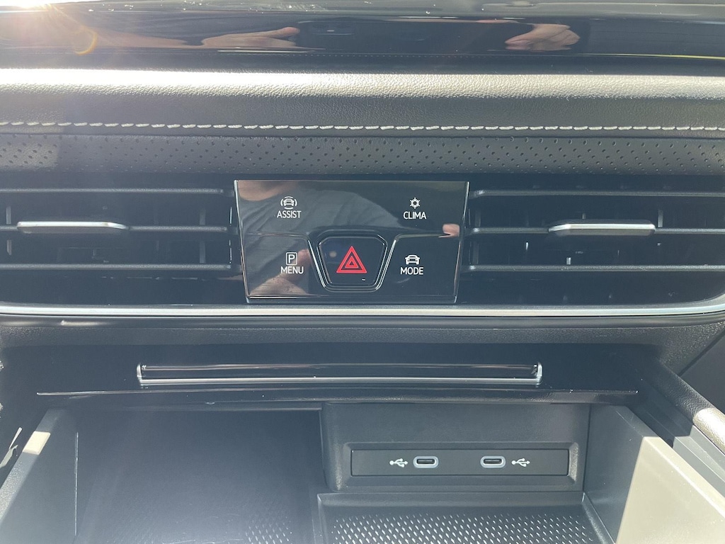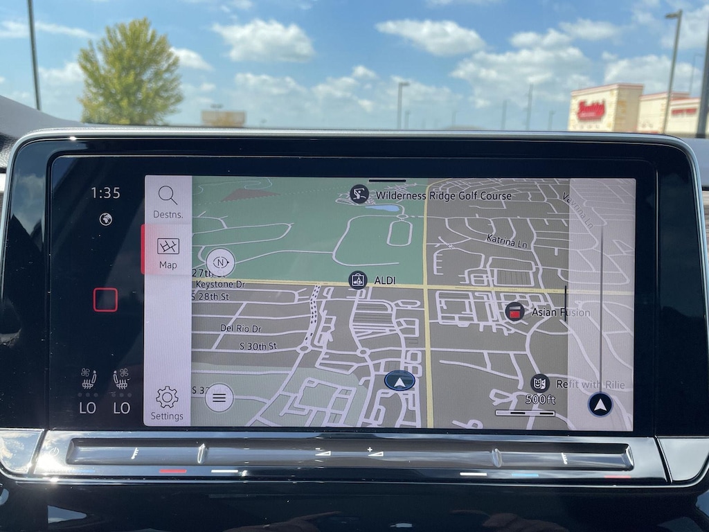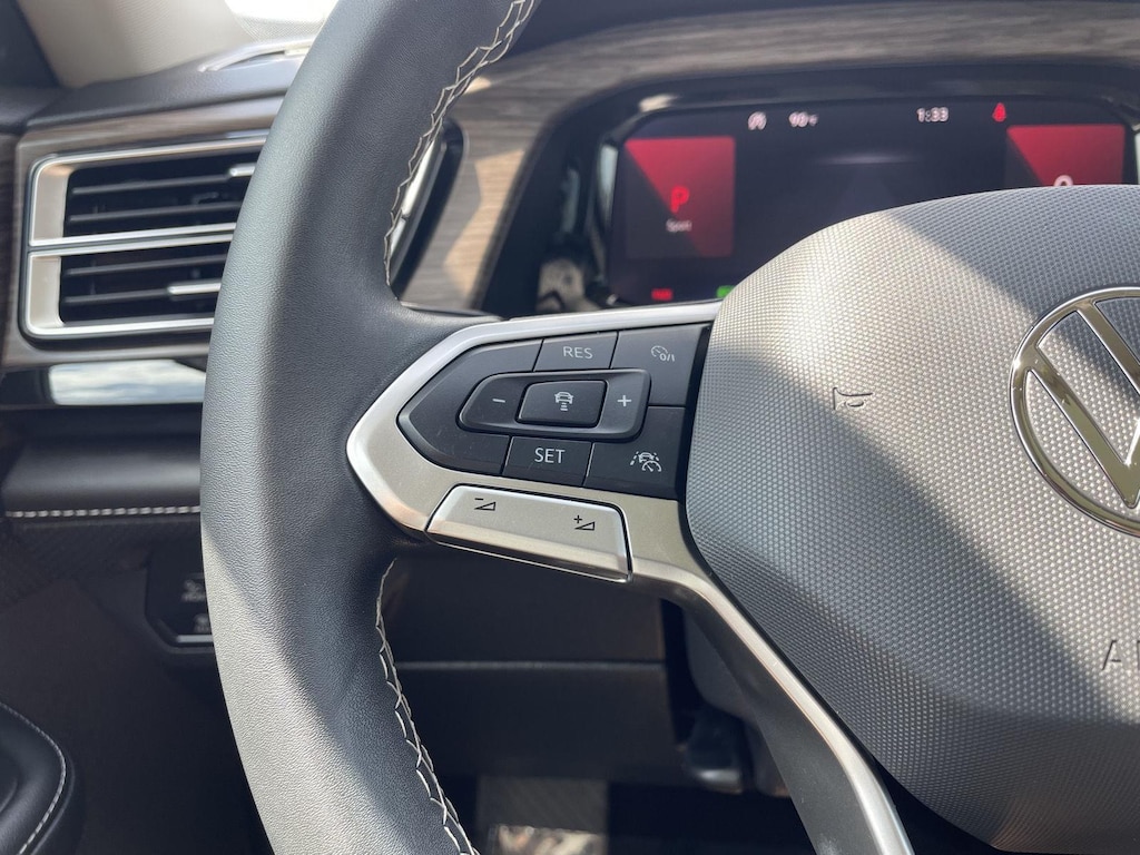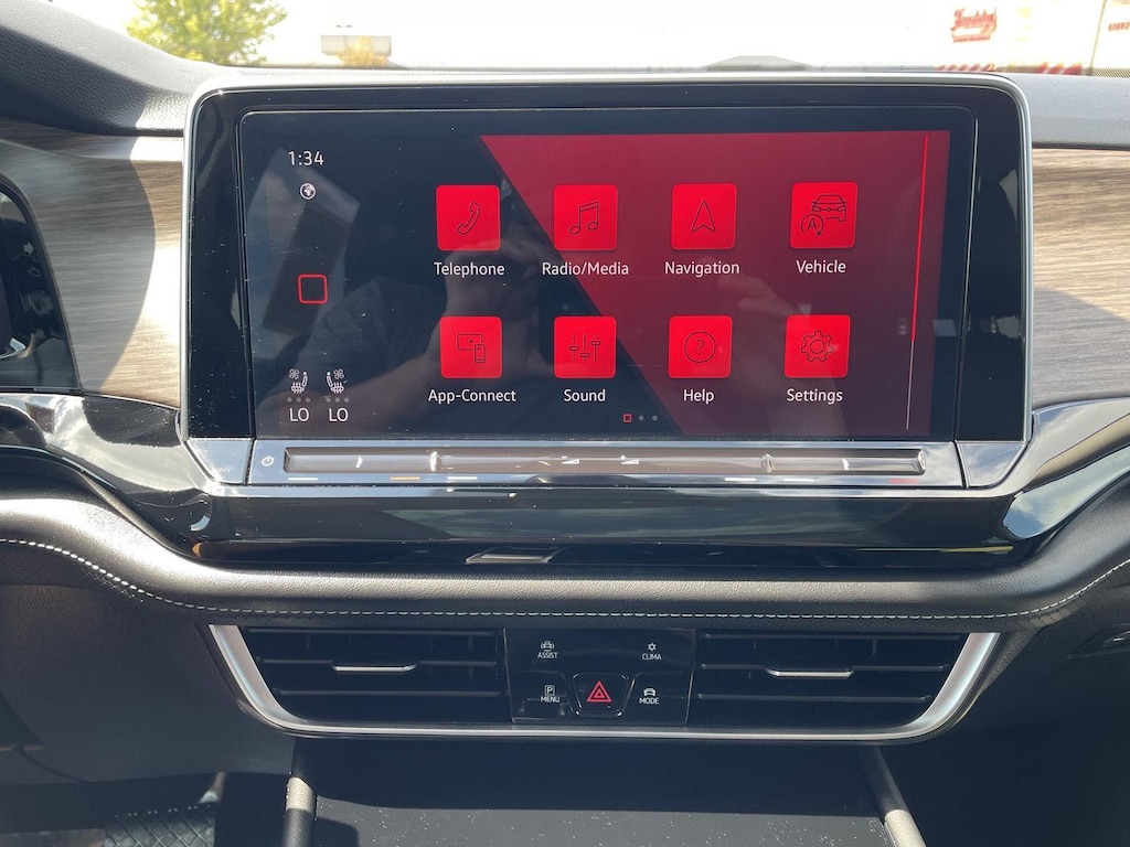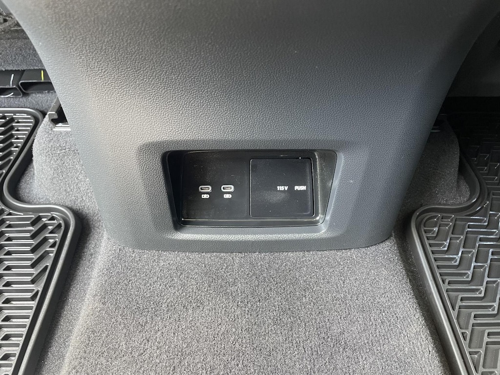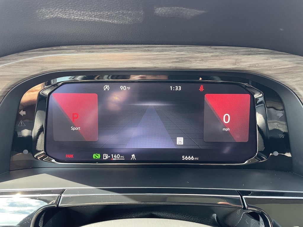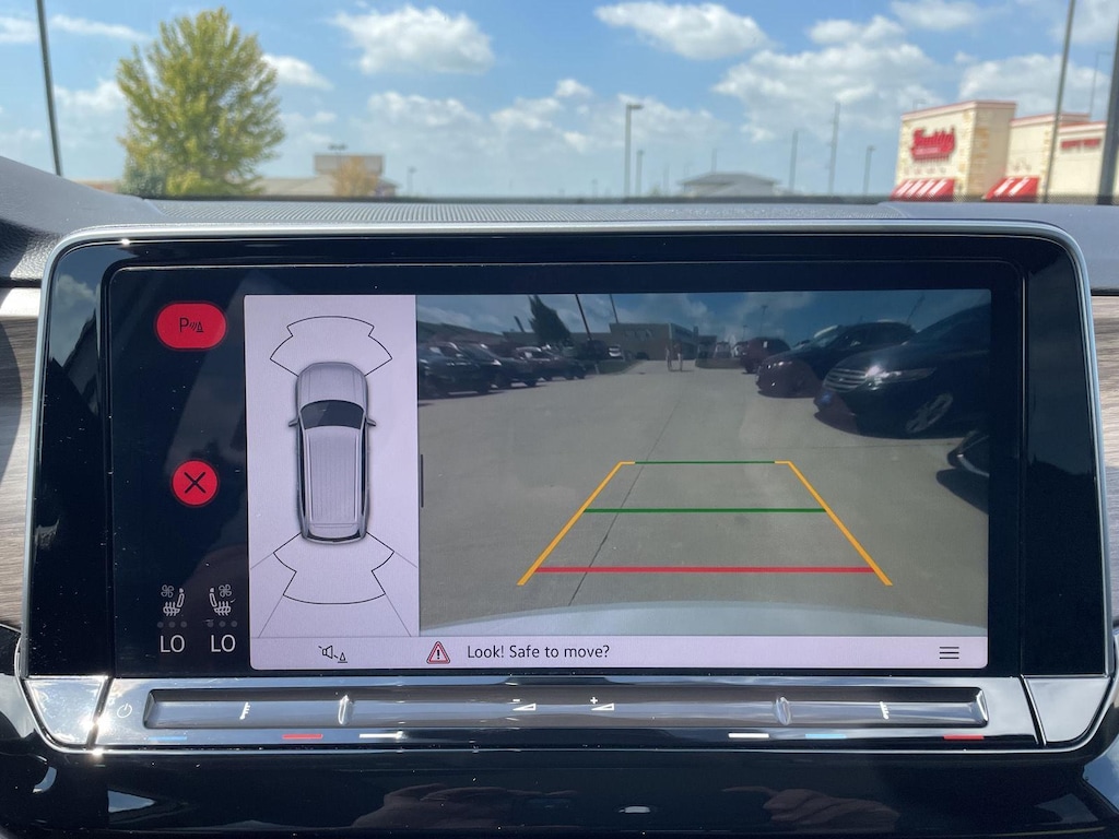 - The vehicle is equipped with a camera that displays an image of the area behind the vehicle on an interior display.